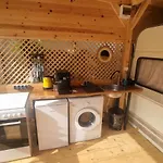 Каравана Амалтея разполага с фурна и кухненска уреди за самостоятелно хранене.